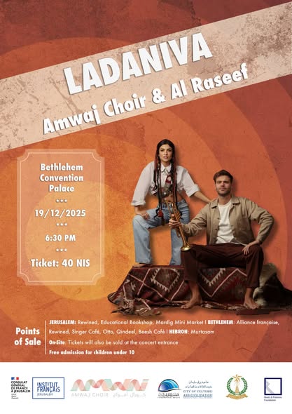 The French-Armenian group Ladaniva will perform a concert with the participation of the Amwaj Choir and the band Al Raseef at the Convention Palace in Bethlehem on Friday, December 19, 2025, at 6:30 PM.