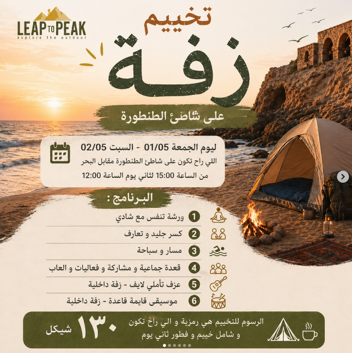 130 NIS (Includes Tent + Breakfast)